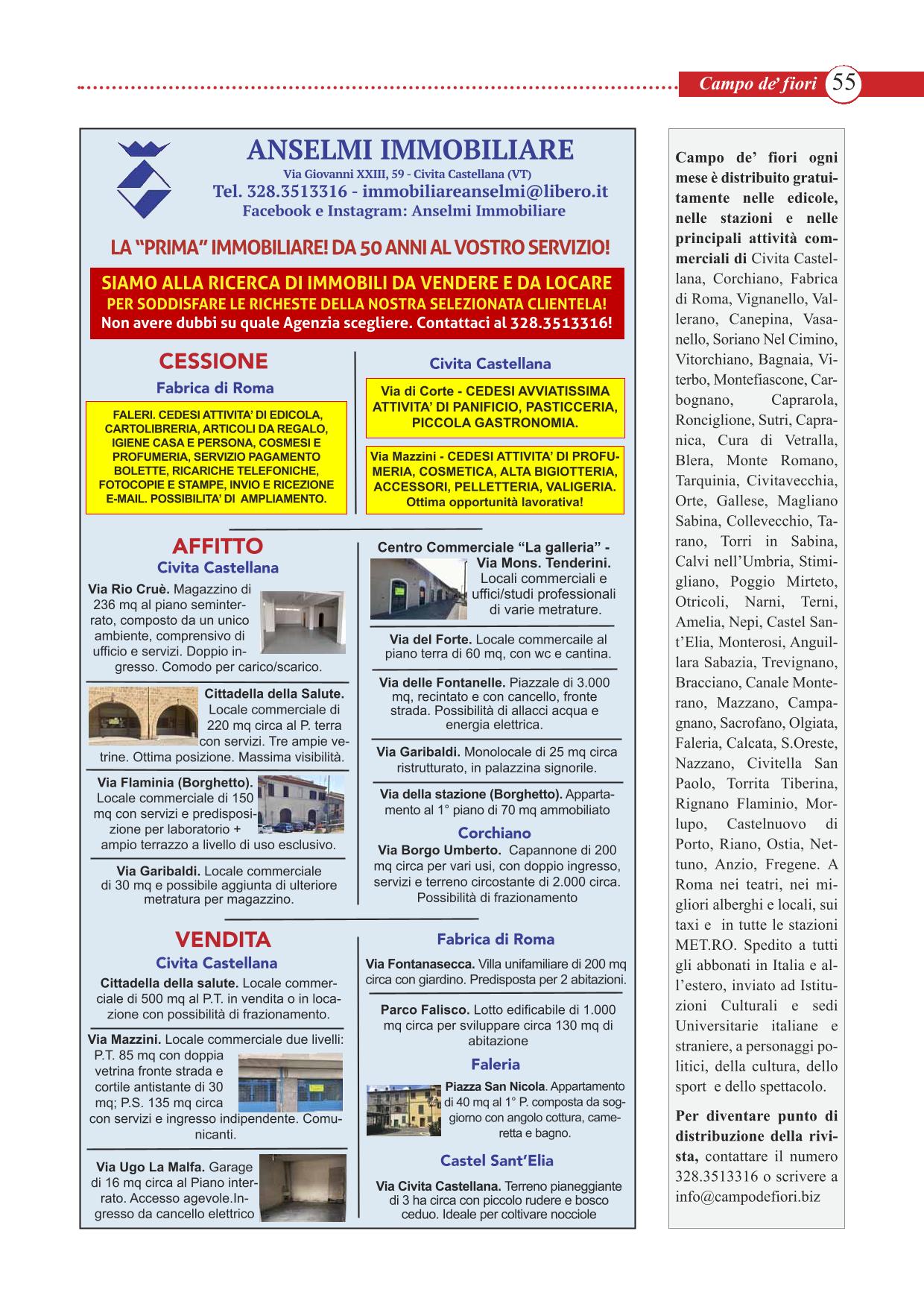 Campo de’ fiori rivista | Mensile di arte, cultura, spettacolo ed attualità | Reg. Trib. VT n. 351 del 02/6/1989 | Iscr. R.O.C. n. 26255