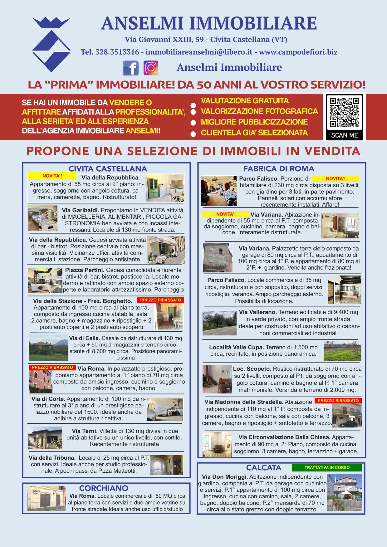 CIVITA CASTELLANA - Corso Bruno Buozzi. Sulla via principale del centro, all’intero della storica “posta vecchia”, proponiamo in vendita appartamento di 70 MQ circa, composto da soggiorno con angolo cottura, camera, cameretta, ripostiglio, bagno + mansarda praticabile. L’appartamento è stato di recente parzialmente ristrutturato. Info 328.3513315